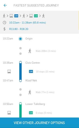 Daarnaast kunnen gebruikers hun favoriete routes en haltes opslaan, hun MyCiTi-kaartbalans controleren en hun kaart opladen. De app biedt ook belangrijke meldingen en updates over de diensten die van invloed zijn op de reiziger. Met deze functies maakt de MyCiTi-app het reizen door Kaapstad een veel soepelere ervaring.
